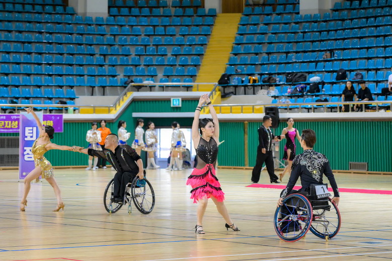 또 ▲휠체어 class1 스탠다드 단종목w, 싱글, class2 스탠다드 단종목 듀오, 시각 스탠다드 단종목T는 부산광역시 ▲포메이션 장년부, 휠체어 class2 라틴 단종목P, 지적 라틴 단종목c는 여수시가 각각 1위에 올랐다.