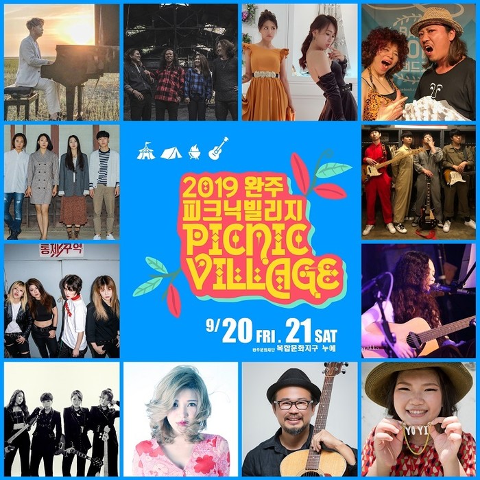 9월 20일부터 진행되는 2019 완주 피크닉 빌리지 (PICNIC VILLAGE) 출연진은 'JU'S TRIO 주스 트리오, GONY BAND 고니 밴드, KIM SUNG SOO MORDEN JAZZ TRIO 김성수 모던 재즈 트리오, THE NOYA 노야, PARK HUISU 박희수, 송장벌레, 언발란스, C&C, AFRICA 아프리카, WALKING AFTER U 워킹 애프터유, DONGIEEHON 동이혼, BAND JOE 밴드죠, NEO 니오' 등의 국내 팀과 'ANNIE & TACO (애니와 타코 / Taiwan), CHEER MON 孟慶而 (치어몬 / Taiwan), YOYI 游怡婷 (요이 / Taiwan), AMELIE (아멜리에 / Japan)' 등의 해외팀이 출연을 한다.