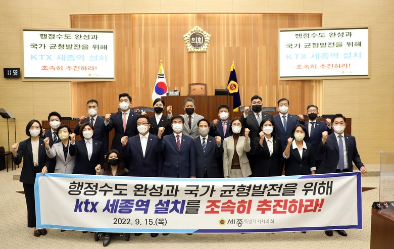 KTX 세종역 설치 촉구 결의안은 세종시가 지방분권과 국가균형발전을 선도하고 명실상부한 행정수도로서 제 기능을 다 할 수 있도록 정부가 조속히 KTX 세종역 설치에 나서야 한다는 인식에서 마련됐다.