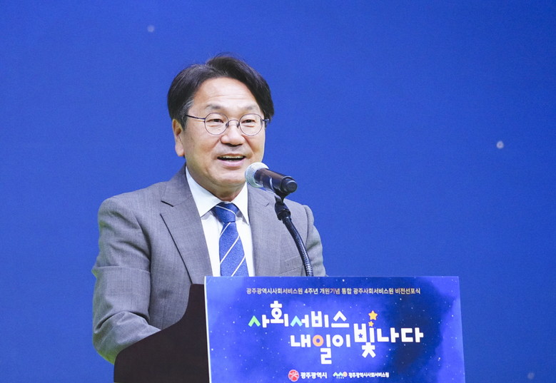 - 강기정 시장 “도전‧혁신으로 공공돌봄‧복지 서비스 성숙” [세계타임즈=광주 손권일 기자] 광주광역시(시장 강기정)와 광주사회서비스원(원장 김대삼)은 12일 광주실감콘텐츠큐브에서 광주사회서비스원 개원 4주년을 맞아 ‘시민의 복지를 선도하고, 기회를 제공하는 사회서비스 전문기관’ 비전 선포식을 열었다.