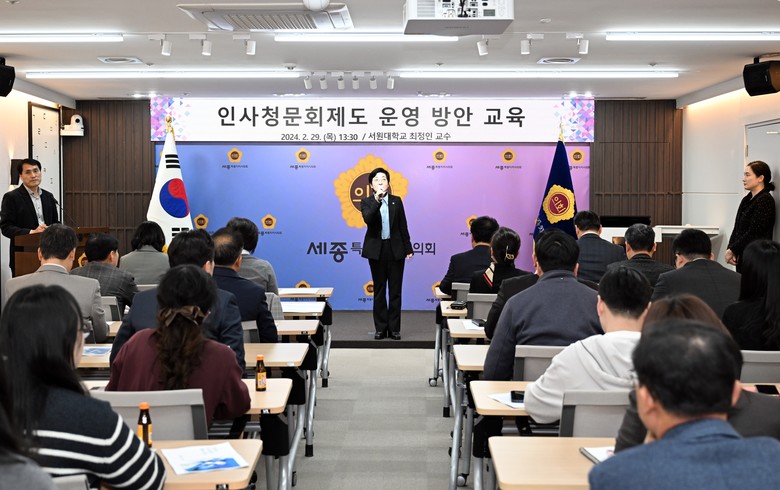 [세종 세계타임즈=이채봉 기자] 세종특별자치시의회(의장 이순열)는 2월 29일 의원 및 의회사무처 직원을 대상으로 인사청문회 운영 방안에 대하여 교육을 실시했다.