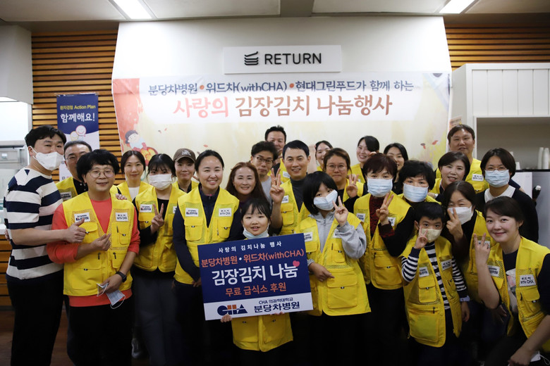 분당 차병원 봉사동호회 위드차(withCHA) 회원들과 임직원들은 23일 기부금을 후원하거나, 직접 김장담기에 참여해 국내산 재료로 만든 김장김치 300포기를 준비했다. 김치는 성남시 자원봉사센터를 통해 저소득가정, 홀몸 어르신들이 이용하는 무료급식소로 전달될 예정이다.