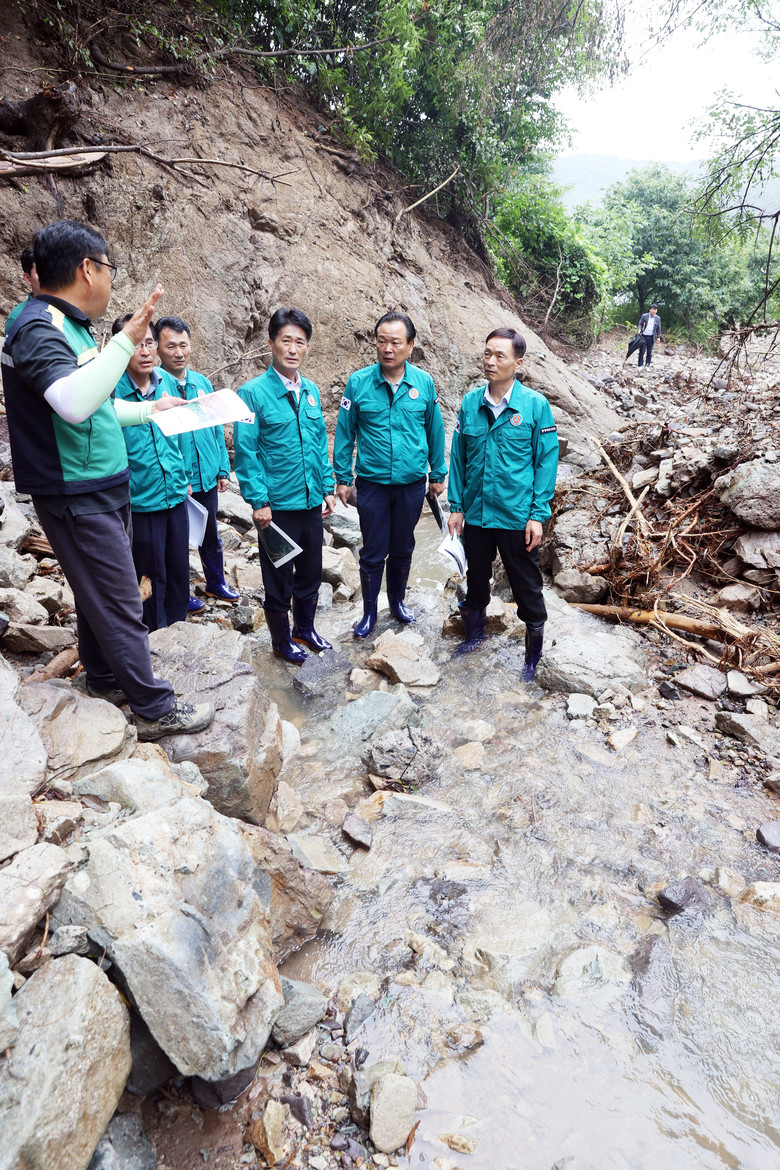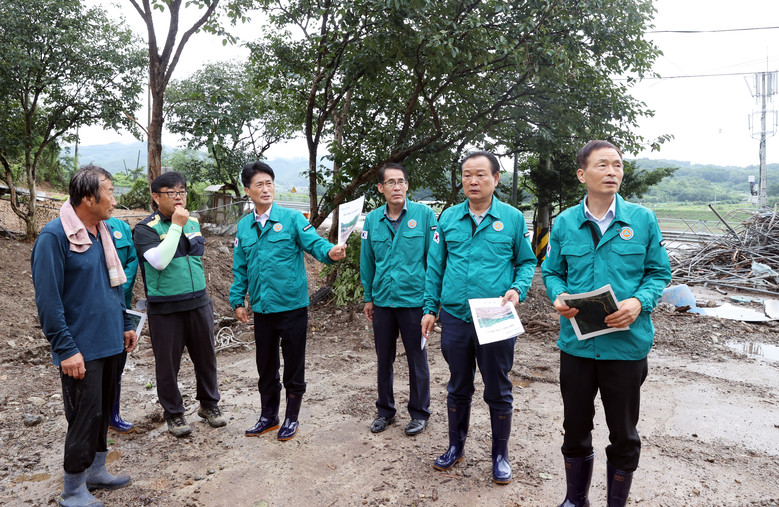 이 의장과 의원들은 먼저 옥천군 이원면 원동리 산사태 현장을 방문해 피해 상황을 보고받고 수해복구 관계자들을 격려했다.