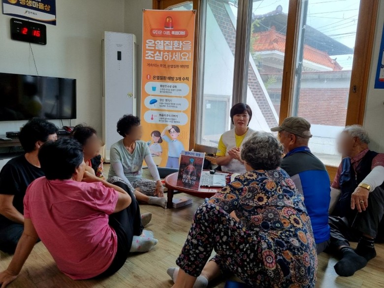 이번 활동은 무더위에 취약한 어르신들의 건강을 살피기 위한 맞춤형 봉사로 이날 행사에는 경로당에 모인 어르신 20여 명이 참여했다. 자원봉사단은 혈관 나이 측정을 통해 건강 상태를 점검하고 온열질환 예방을 위한 교육과 함께 생수 2박스를 전달하며 충분한 수분 섭취를 권장했다.