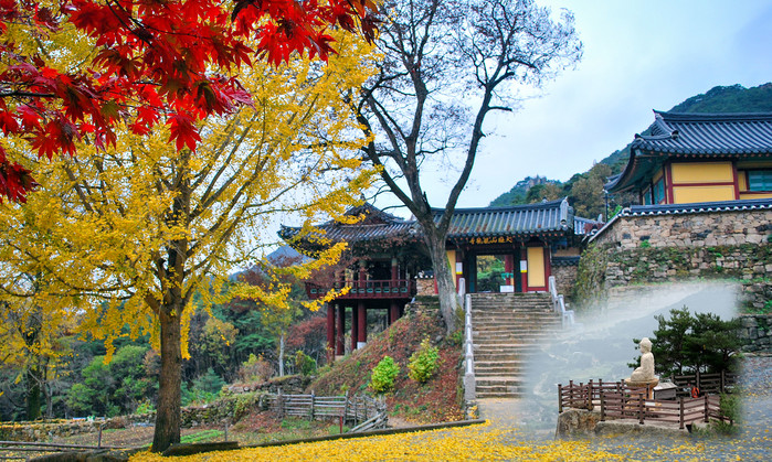 ▲ 관룡사(창녕) = 화왕산 자락에 위치한 1,400년의 역사를 가진 관룡사에 가면 구룡산 단풍과 샛노란 은행나무 고목이 한폭의 산수화처럼 방문객을 맞이한다. 창녕의 가을정취를 한껏 느낄 수 있는 곳이다.