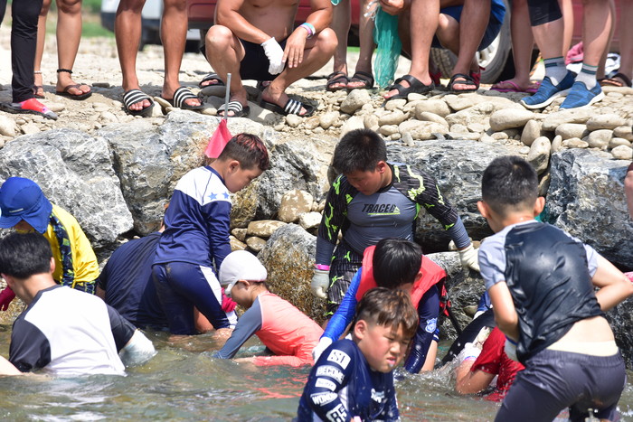 40도를 웃도는 더위에도 물속에 뛰어들어 맨손송어잡기를 하고, 삼굿구이로 익힌 감자와 옥수수를 먹으며 이열치열 더위를 이겨내고 있다.