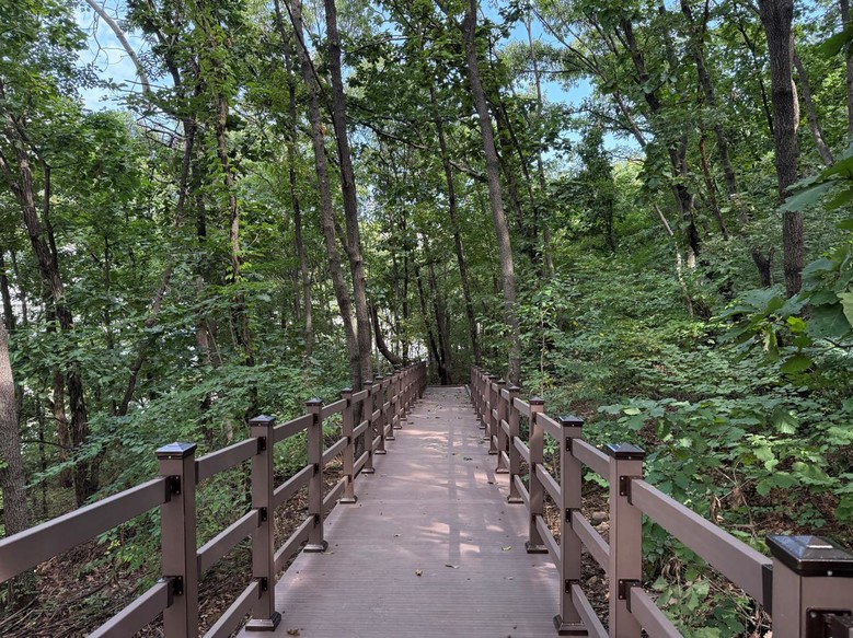 데크로드는 총 연장 1,042m, 경사도 8% 이하의 무장애 구조로 조성돼 휠체어·유모차 이용자도 무리 없이 이동할 수 있으며, 황산숲을 한층 더 편리하게 즐길 수 있는 환경이 마련될 것으로 기대된다.