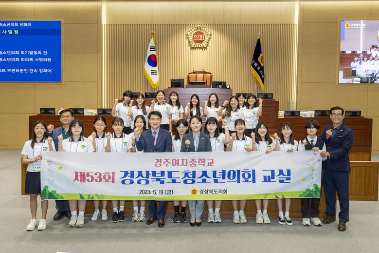 [경북 세계타임즈=한성국 기자] 경상북도의회(의장 배한철)는 경주여자중학교 학생을 대상으로 제53회 경상북도청소년의회 교실을 경상북도의회 본회의장에서 5월 19일 개최했다.