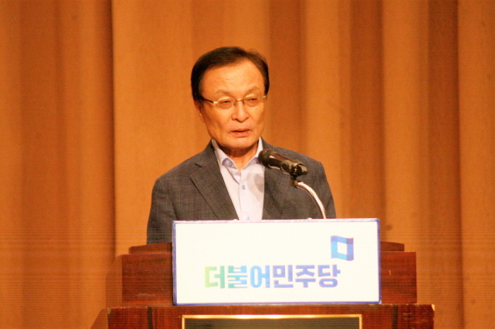 [세계타임즈 이판석 기자] 31일 오후 충남 예산군 덕산 리솜리조트에서 진행된 더불어민주당 정기국회 대비 국회의원 워크숍에 참석한 이해찬 대표가 인사말을 하고 있다.