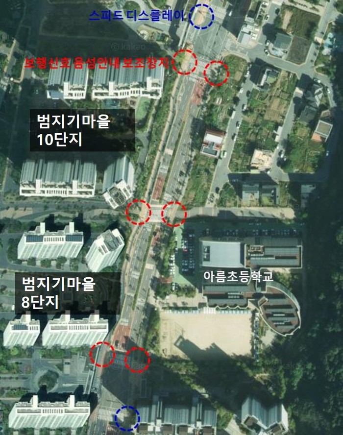 세종특별자치시의회 상병헌 의원은 범지기마을 8단지와 10단지에서 아름초를 연결하는 아름동 달빛로 횡단보도에 스피드 디스플레이와 보행신호 음성안내 보조장치, 과속 단속카메라를 설치할 계획이라고 밝혔다.