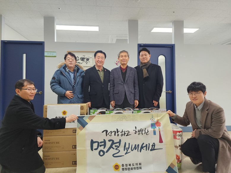 [충북 세계타임즈=이현진 기자] 충북도의회 행정문화위원회(위원장 노금식)와 사무처 직원들은 설 명절을 앞둔 7일 진천읍 소재 진천요양원(원장 박연수)을 방문해 시설 관계자와 입소자들을 격려하고 위문품을 전달했다.
