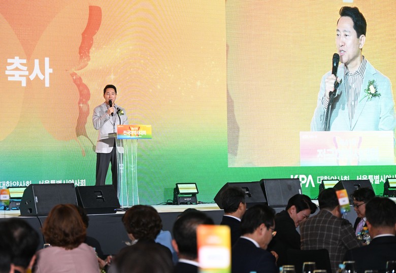 | ▲ 오세훈 서울시장이 21일(토) 강서구 코엑스 마곡에서 열린 '제41차 전국여약사대회'에서 개회를 축하하고 있다. |
