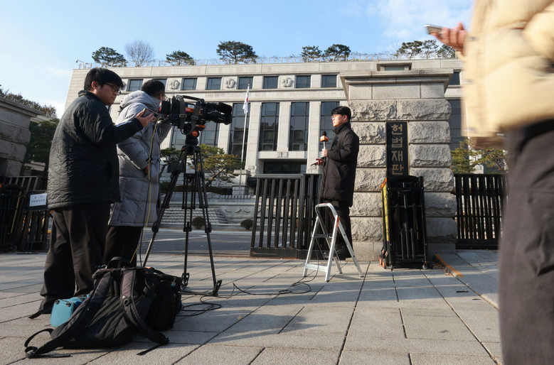 헌법재판소는 14일 윤석열 대통령에 대한 국회의 탄핵소추의결서를 접수하고 탄핵심판 절차를 시작했다. 문형배 헌법재판소장 권한대행은 사건 접수 직후 곧바로 "16일 오전 10시 재판관 회의를 소집했다"며 사건처리 일정을 논의하겠다는 입장을 밝혔다고 헌재 관계자는 전했다. 사진은 15일 서울 종로구 헌법재판소 모습.