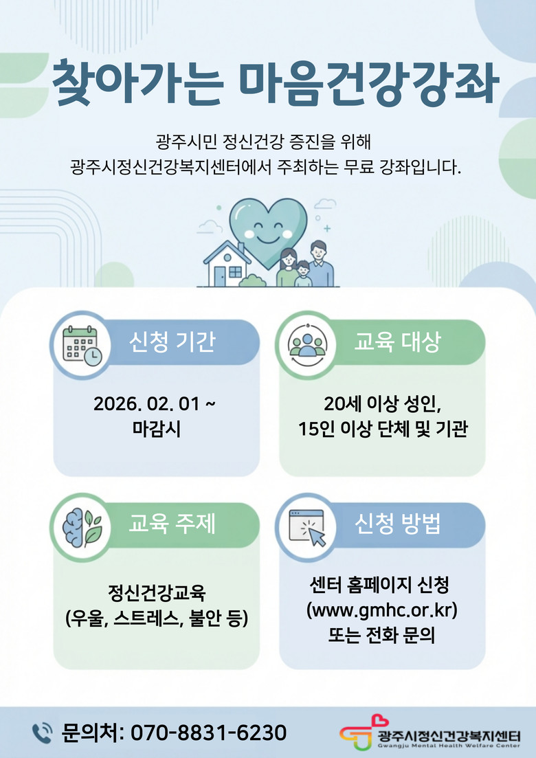 한편, 광주시정신건강복지센터는 전문의 상담과 치료비 지원, 정신건강 인식 개선 활동 등을 통해 시민의 정신건강 증진과 지역사회 안전망 구축에 주력하고 있다.