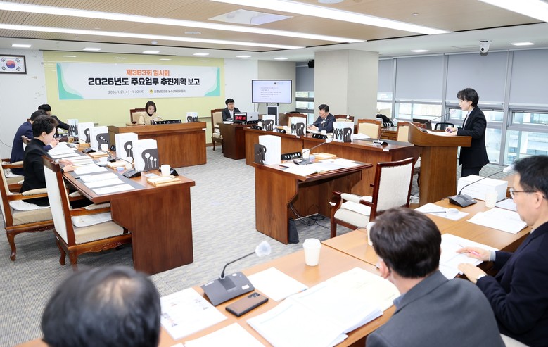 [충남 세계타임즈=이현진 기자] 충남도의회 농수산해양위원회(위원장 이연희)는 22일 제363회 임시회 제2차 회의를 열고 충남도 농업기술원, 해양수산국, 수산자원연구소로부터 2026년도 주요 업무계획을 보고받았다.
