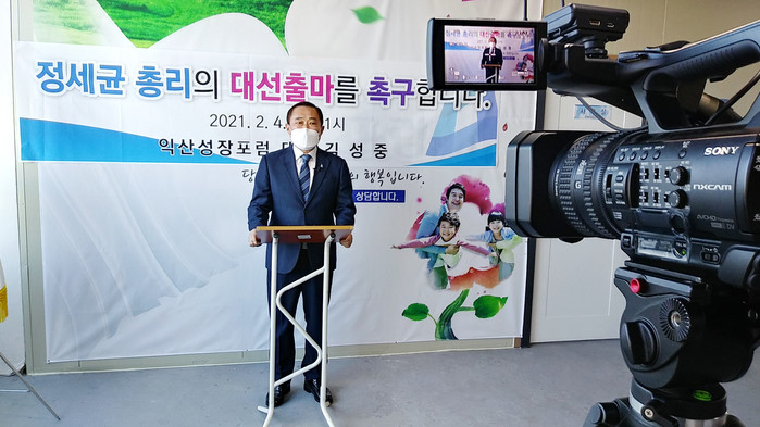 [세계타임즈=백진욱 기자] 2월 4일 익산성장포럼 김성중 대표가 기자회견을 통해 정세균 총리의 대선 출마를 촉구했다.