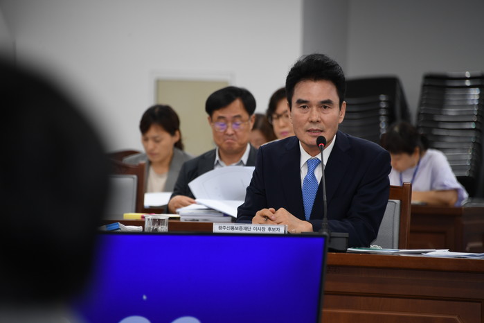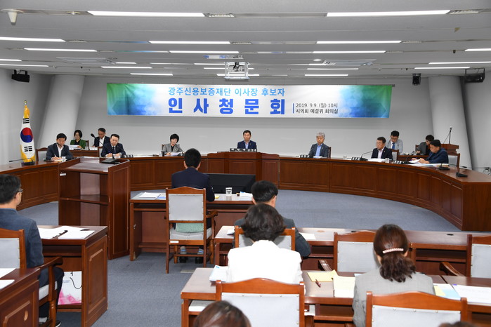 [광주=세계타임즈 손권일 기자] 광주광역시의회 광주신용보증재단 이사장 인사청문특별위원회(위원장 조석호)는 9월9일 시의회 5층 예결위회의실에서 변정섭 이사장 후보자에 대한 청문회를 실시했다.
