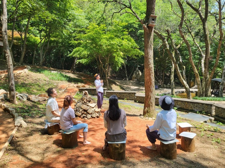 회기별로 △시작의 숲 △감각의 숲 △소통의 숲 △회복의 숲 △희망의 숲이라는 주제로 구성된 이번 프로그램은 차크라 명상, 맨발 걷기, 아로마 마사지, 숲속 대화, 노르딕 워킹, 크리스탈 싱잉볼 명상 등 다양한 산림치유 기법이 포함되었다.