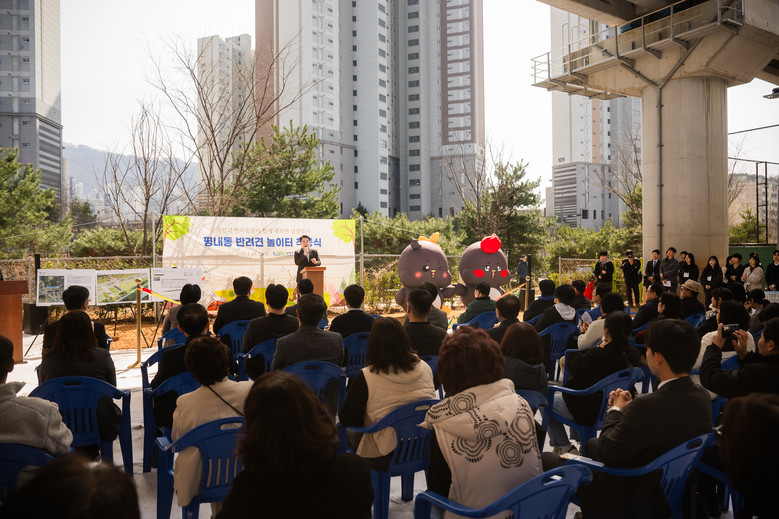 조성대 의장은 축사를 통해 “저 또한 반려견과 함께 살고있는 반려인의 한 사람으로서, 반려동물은 이제 우리 곁에서 함께 살아가는 떼려야 뗄 수 없는 소중한 가족”이라며, “오늘 착공하는 놀이터가 반려견이 마음껏 뛰놀 수 있는 공간이자 반려인들에게는 서로 정겹게 소통할 수 있는 따뜻한 쉼터가 되기를 바란다”고 전했다.