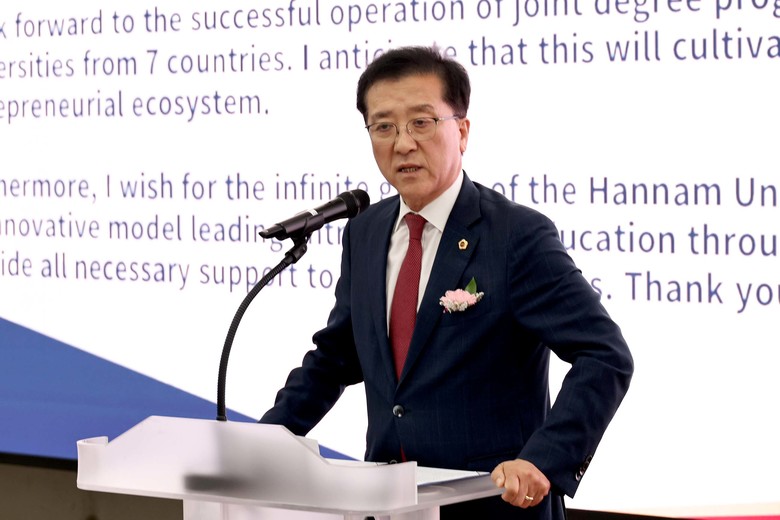 조원휘 의장은 축사를 통해 “7개국 대학 간 협력체제 구축으로 창업 인재 양성과 대학주도형 창업 생태계 조성이 촉진될 것으로 기대한다”며, “한남대 글로벌 창업 연합대학이 창업 교육을 선도하는 혁신 모델이 될 수 있도록 대전시의회에서도 필요한 지원을 아끼지 않겠다”고 말했다.