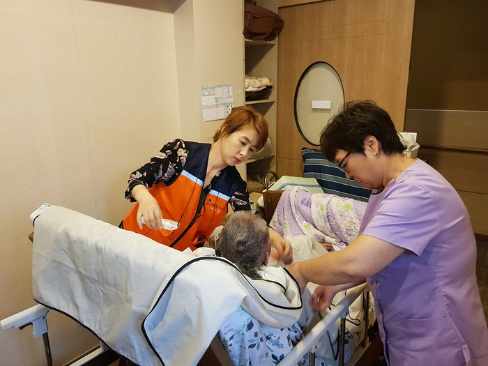 김숙희 원장은 “ 사랑의 사다리 밴드 미용봉사가 거동을 못하시는 어르신들께 큰 힘이 되고 있다.“면서 감사함을 전했다.