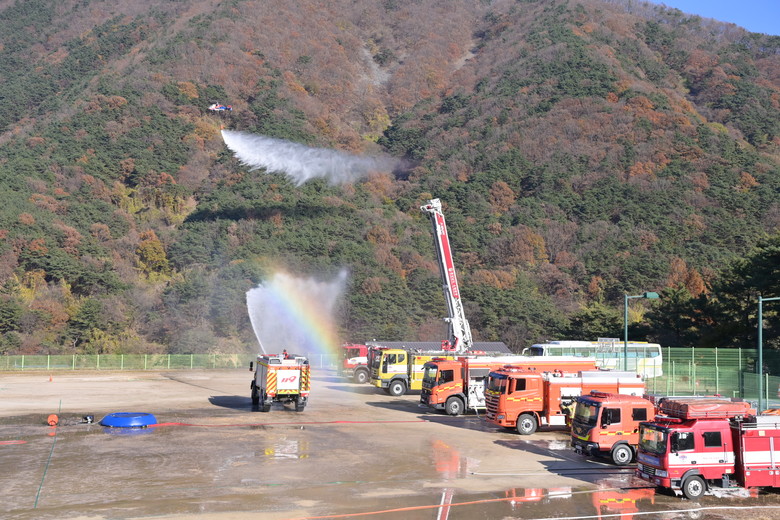 이번 시연회에서는 ▲산불 신속대응반의 소방호스배낭을 활용한 전술 ▲산림 내 거점에 이동식 수조를 활용한 전술 ▲험지펌프차를 활용한 기동 방수 ▲대용량 급수지원차 및 고성능화학차 등 활용한 진압 전술 ▲산불 진화 헬기 집중방수 및 의용소방대원 경계‧지원 등 입체적인 산불 대응 전술을 선보였다.
