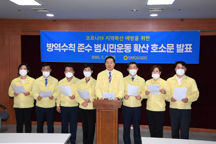 광주시의회는 호소문을 통해 “예기치 못한 사상초유의 코로나19 감염병 사태로 우리 시민들은 지난 6개월 동안 코로나19의 공포 속에서 너무나 힘든 시기를 보내고 있다”며, “그러나 이에 굴하지 않고 ‘나눔과 연대의 광주정신’을 바탕으로 담대히 이겨내고 계신 위대한 150만 광주시민들께 한없는 감사와 존경의 말씀을 드린다”고 밝혔다.