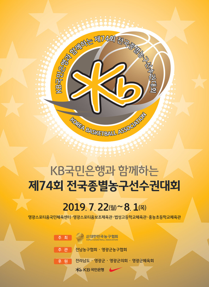 [세계타임즈 김인수기자] 대한민국농구협회(회장 방열)는 전라남도 영광군에서 오는 7월 22일부터 8월 1일까지 11일간 제74회 전국종별농구선수권대회를 개최한다.