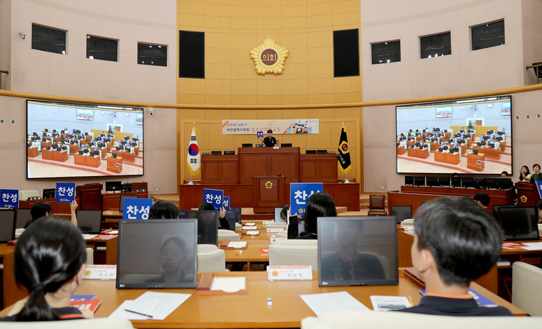 [대전 세계타임즈=이채봉 기자] 대전시의회(의장 이상래)는 21일(화) 남선중학교 학생들을 대상으로 2024년 상반기 세 번째 청소년의회교실을 개최했다.