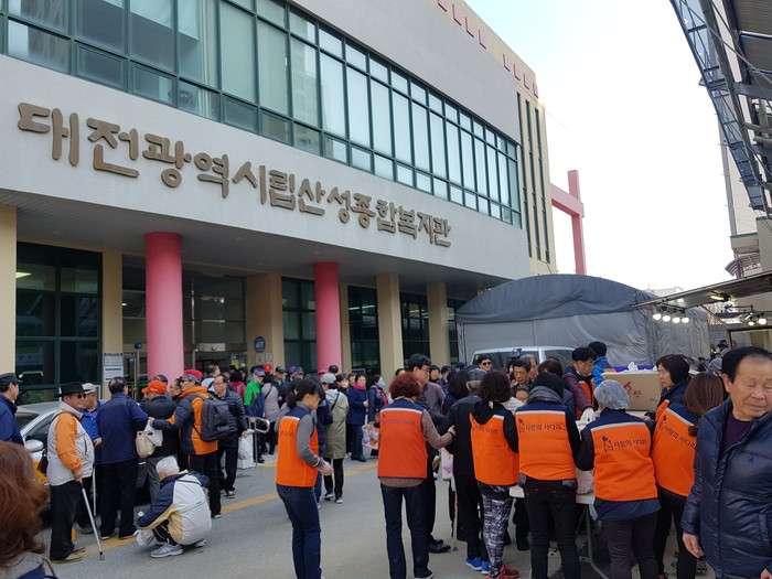[대전=세계타임즈 이장성 기자] 대전시 SNS 봉사단체 사랑의 사다리 밴드(리더 이정제)는 8일 오전11시, 대전광역시립산성종합복지관(관장 이상용)에서 시각장애인 400명에게 바비큐 통닭 200마리 봉사로 우리 사회의 따뜻한 사랑을 전달하였다.