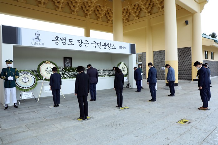 [세종=세계타임즈 이채봉 기자] 세종특별자치시의회는 17일 대전현충원에 마련된 국민분향소에서 ‘서거 78년, 봉오동전투 101년’ 만에 고국으로 돌아온 독립운동가 홍범도 장군을 추모했다.