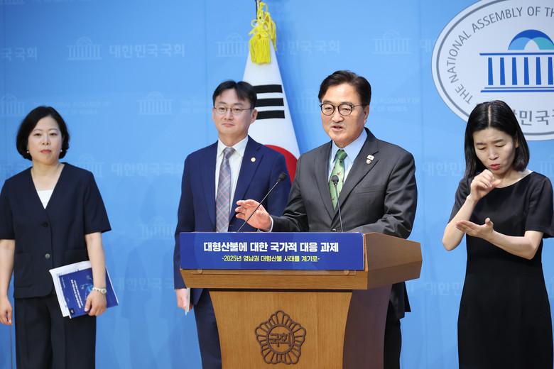 산림에 인접하거나 수목으로 둘러싸인 문화유산은 평시에 위험 수목을 분류해놓고, 산불 확산 시 방화선 구축을 위해 사전 조치할 수 있도록 해야 한다고 설명했다.대형산불 예방 효과가 큰 내화수림을 산불위험지역과 발생지역을 중심으로 조성하고, 기존 산림사업들은 산불 예방효과를 철저히 검증해야 한다고 덧붙였다.이 밖에도 보고서에는 대형산불 발생 시 동물구호, 산불 이재민 임시주거용 조립주택 제도, 재난폐기물 관리, 산불 원인자 처벌 및 신고 포상제도 등이 담겼다.이날 기자회견에는 우원식 국회의장이 격려차 방문했다.