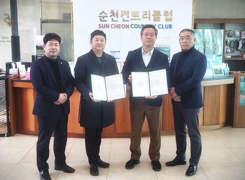 순천CC 임종욱 대표(사진 오른편 두번째)는 이를 위해 순천CC 클럽하우스에서 이와 관련한 업무협약을 맺었다.(순천CC 제공)