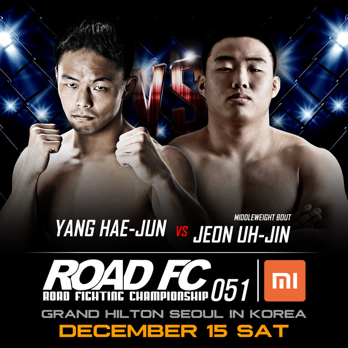 [세계타임즈 김인수기자] 양해준과 전어진은 12월 15일 그랜드 힐튼 서울에서 열리는 XIAOMI ROAD FC 051에 출전한다. 이날 남성부 경기가 모두 끝난 뒤 여성부리그인 XIAOMI ROAD FC 051 XX가 연이어 진행된다.