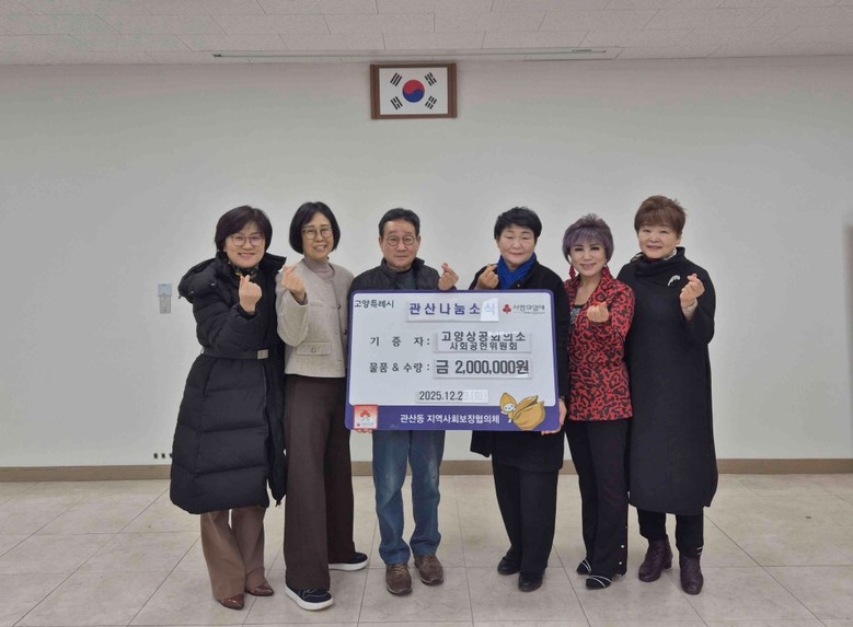 이날 전달식에는 지역사회 복지 증진에 힘쓰고 있는 관산동 지역사회보장협의체 김성두 위원장과 고양상공회의소 사회공헌위원회 구성자 위원장이 참석했다.