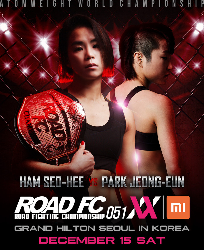 한편 ROAD FC는 12월 15일 그랜드 힐튼 서울에서 XIAOMI ROAD FC 051이 끝난 뒤 여성부리그 XIAOMI ROAD FC 051 XX를 연이어 개최한다. 메인 이벤트로 세계랭킹 1위의 ROAD FC 아톰급 챔피언 함서희와 ‘몬스터 울프’ 박정은의 타이틀전이 확정돼 아톰급 챔피언을 가린다.