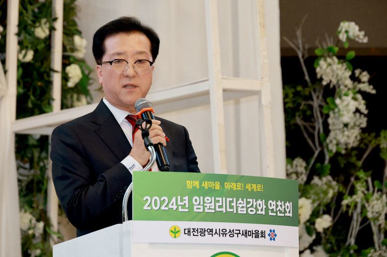 [대전 세계타임즈=이채봉 기자] 대전시의회 조원휘 의장은 18일 유성컨벤션웨딩홀에서 열린 ‘2024년 유성구 새마을회 임원 리더십 강화 연찬회’를 찾아 지역사회 발전과 공동체 화합을 위한 새마을지도자의 헌신과 열정에 감사를 전하고, “대전시의회는 대전 발전의 리더인 새마을지도자 여러분과 함께 일류경제도시 대전의 도약을 위해 최선의 노력을 다하겠다”고 성원했다.