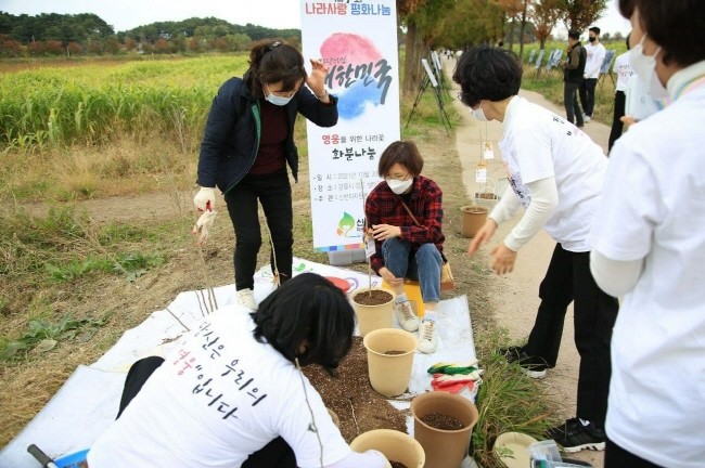 [세계타임즈 백진욱 기자] 신천지자원봉사단 강릉지부는 지난 10월 30일 외부 관광객과 강릉시민들이 찾는 대표 관광지인 경포 생태저류지에서 “제7회 나라사랑 평화나눔” 기획봉사의 일환으로 영웅을 위한 나라꽃 , "무궁화 묘목 화분 나눔" 행사를 실시했다.