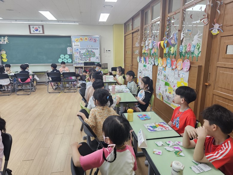 1학년 통합교과서‘우리나라’를 통해 그동안 배운 학습 내용을 바탕으로 유치원 동생들에게 소개할 10개의 체험활동 코너(한복 패션쇼, 부채 만들기, 지도 퍼즐 맞추기, 송편 만들기, 한글 이름 꾸미기, 우리나라 화폐, 딱지치기, 우리나라 태극기, 우리나라 꽃, OX퀴즈)를 학생들이 스스로 선정하고 활동 자료를 준비하였으며, 1학년 학생들이 각 체험활동 코너의 꼬마 선생님이 되어 유치원 동생들이 이해하기 쉽게 설명하고 안내하는 역할을 맡아 즐겁게 활동하였다.