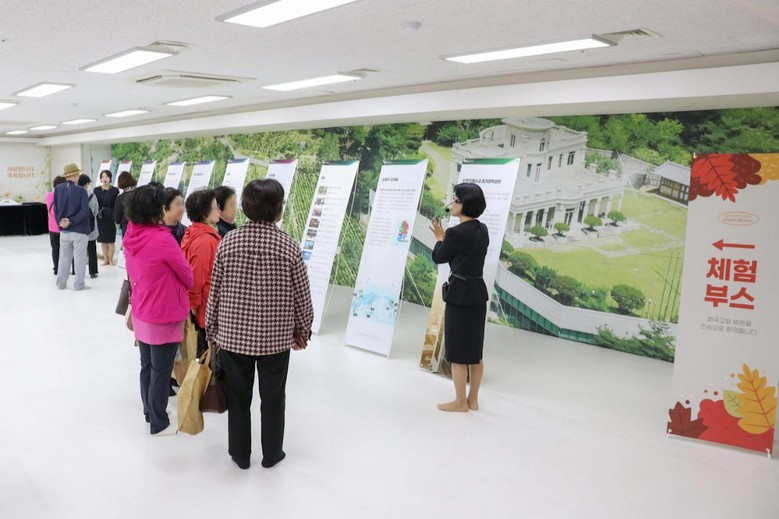 | ▲ 신천지예수교 증거장막성전 바돌로매지파 화곡교회(담임강사 백도훈·이하 신천지 화곡교회)는 지난 25일 오후 4시 지역 주민과 성도들이 함께하는 ‘오픈하우스 가을빛 힐링 음악회’를 개최했다. 음악회 전후로 홍보단의 도슨트가 있었다. 도슨트들은 ▲신천지의 역사 ▲신천지 교회의 의미 등을 소개했다. [사진 제공 = 신천지 화곡교회] |