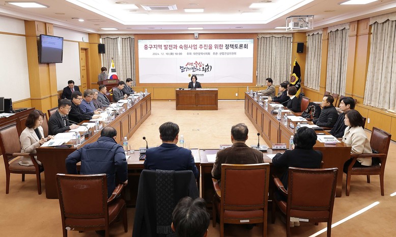[대전 세계타임즈=이채봉 기자] 대전시의회는 산업건설위원회 박주화 의원(국민의힘, 중구1) 주재로 10일 소통실에서 ‘중구지역의 발전과 숙원사업 해결을 위한 정책토론회’를 개최하여 지역 현안에 대한 실질적인 해법 모색에 나섰다.