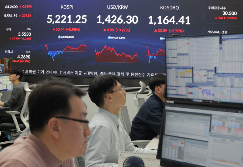 이날 코스피 지수는 전 거래일 대비 50.44p(0.98%) 오른 5,221.25에, 코스닥은 30.89p(2.73%) 오른 1,164.41에 장을 마감했다. 원/달러 환율은 오후3시30분 기준 전날보다 3.8원 오른 1,426.3원으로 마감했다. 2026.1.29