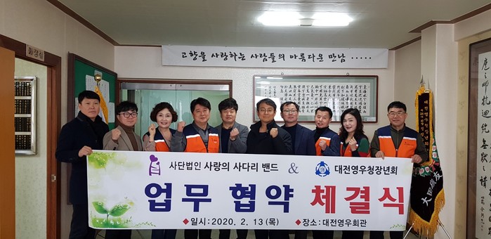 [대전=세계타임즈 이채봉 기자] 다양한 봉사를 꾸준히 하고 있는 대전시 SNS 봉사단체 사랑의 사다리 밴드(리더 이정제)는 13일 오전11시, 중구 선화동에 위치한 대전 영우본회(회장 이근호)에서 대전 영우청장년회(회장 정성우)와 업무협약식을 하였다.
