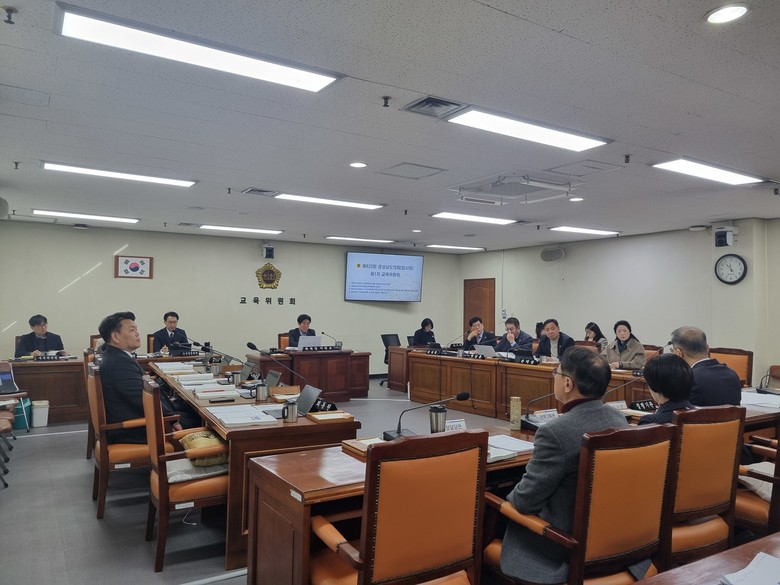[경남 세계타임즈=최성룡 기자] 8일 경남도의회 교육위원회(위원장 이찬호)는 제420회 임시회 제1차 교육위원회를 개최하여 경상남도립학교 운영위원회 운영조례 일부개정조례안, 경상남도교육청 평생교육 활성화 조례안, 경상남도교육감 소속 공무원 특수지근무수당 지급대상기관과 등급에 관한 조례 일부개정조례안을 원안 가결하고 경상남도교육청 본청 소관 2025년도 주요업무 추진계획 보고를 받았다.