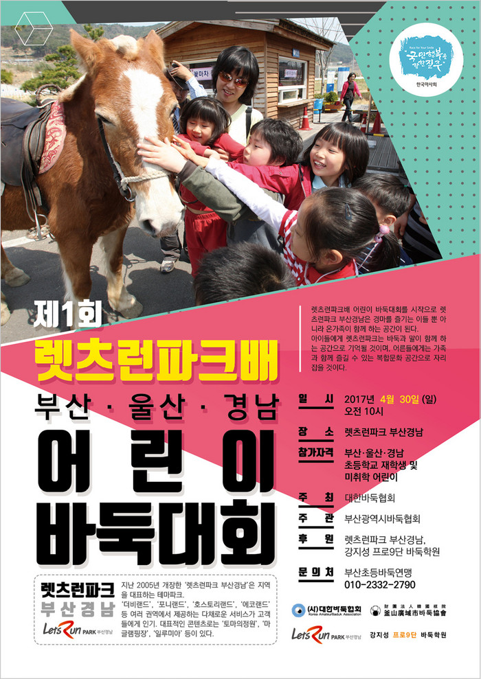 오는 4월 30일(일)에는 ‘제1회 렛츠런파크배 부산, 울산, 경남 어린이 바둑대회’를 개최 및 후원함으로써, 바둑계의 발전도 지원하는 역할을 톡톡히 해내고 있다.