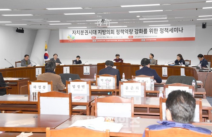 [광주의회=세계타임즈 손권일 기자] 광주광역시의회(의장 김동찬)는 12월 16일 오후 1시 30분에 시의회 5층 예산결산특별위원회 회의실에서 "자치분권시대 지방의회 정책역량 강화를 위한 정책세미나"를 주제로 토론회를 가졌다.