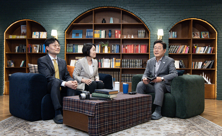 더불어민주당 이재명 대선 후보가 28일 서울 강남구의 한 스튜디오에서 열린 K-이니셔TV '1400만 개미와 한배 탔어요' 유튜브 라이브에서 발언하고 있다. 2025.5.28 [공동취재]