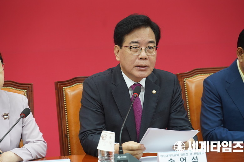 '송언석' 국민의힘 비상대책위원장 겸 원내대표가 11일 오전 서울 여의도 국회에서 열린 비상대책위원회의에서 발언하고 있다.