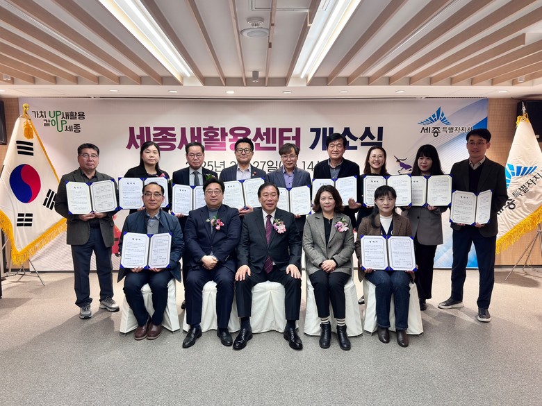 [세종 세계타임즈=이채봉 기자] 세종특별자치시(시장 최민호)가 27일 소담동 세종남부간선급행버스체계(BRT) 환승센터 2층에서 ‘세종새활용센터’의 개소식을 열고 자원순환 도시 실현을 위한 본격적인 거점 운영에 나섰다.