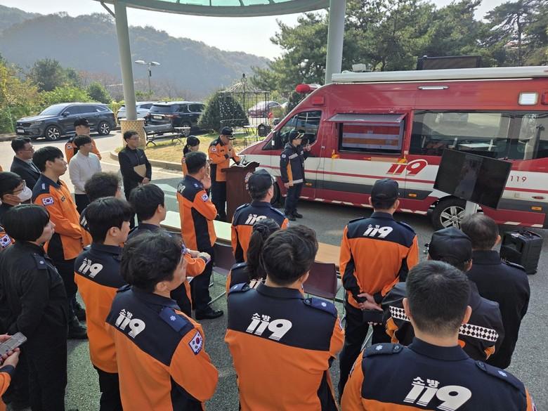 이날 시연회에선 병원 관계자에게 시설 현황을 청취했으며, 병원 내부 구조와 소방시설을 확인하고 방재실 수신기를 점검했다.